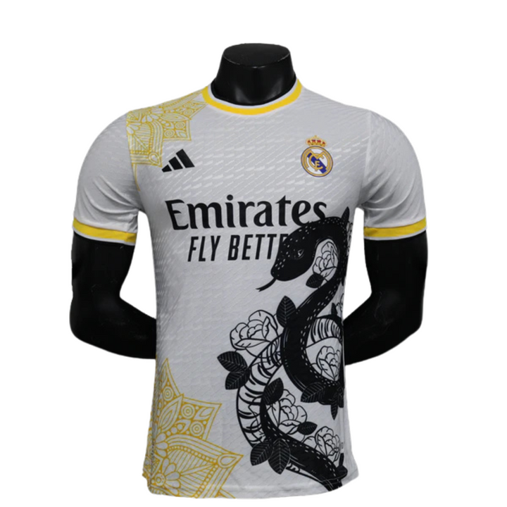 Camisa Real Madrid Edição Especial 2024/25 Jogador Adidas Masculino com Patch - Branca, Dourada e Preta